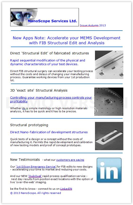 • Accelerate your MEMS Development with FIB Structural Edit and Analysis